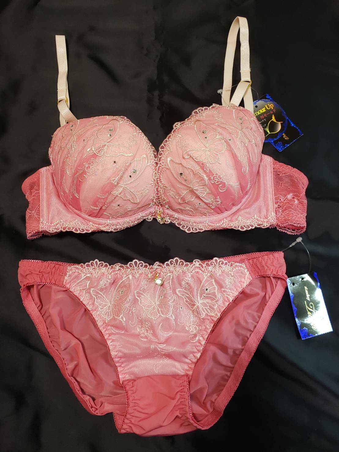 繊細なバタフライ刺繍が美しい、軽やかチュールのブラセット。